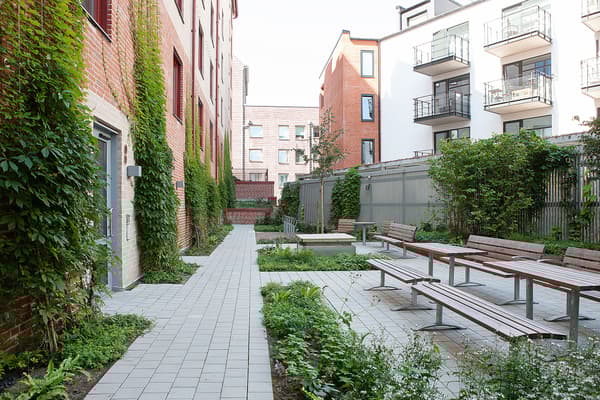 Kort om brf Kaprifolen: Blandargatan 2, 4 och 6 i Luthagen, Uppsala. 34 bostäder med bostadsrätt, 2–4 rum och kök. Sällskapslokal med uteplats mot grönskande innergård. Gästrum. Gård med grillplats, pergola och boulebana.