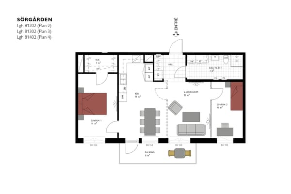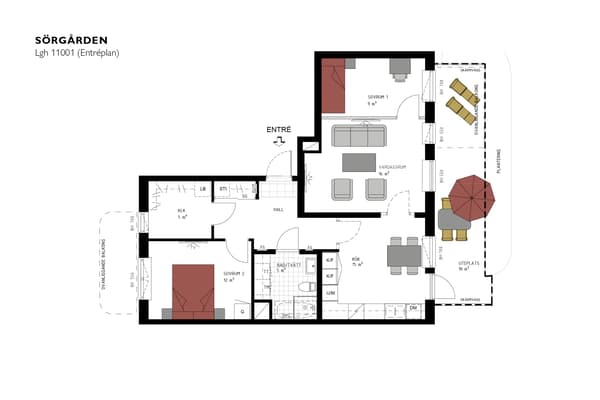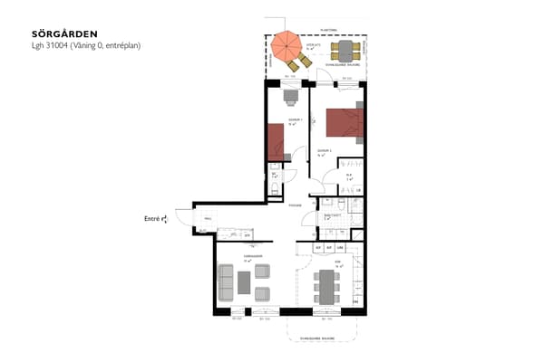 Här får du ett hem på ett soligt läge som uppskattas stort under sommarmånaderna när du tillbringar mycket tid på uteplatsen för både måltider och avkoppling. Rummen inne är optimalt fördelade med de sociala i ena delen, privata i andra och funktionella i mitten. Bara några kliv bort finns den gemensamma innergården och hela stadens centrum runt hörnet.